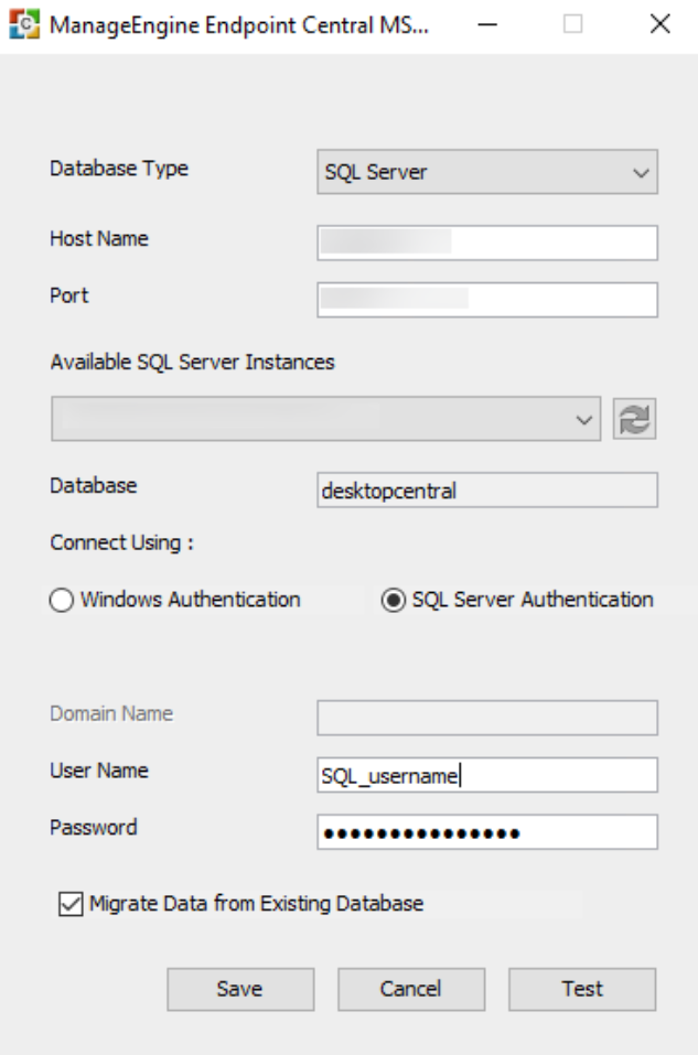 - Ensure the "Migrate Data from Existing Database" checkbox is selected to migrate data from your current database to the new MSSQL database.