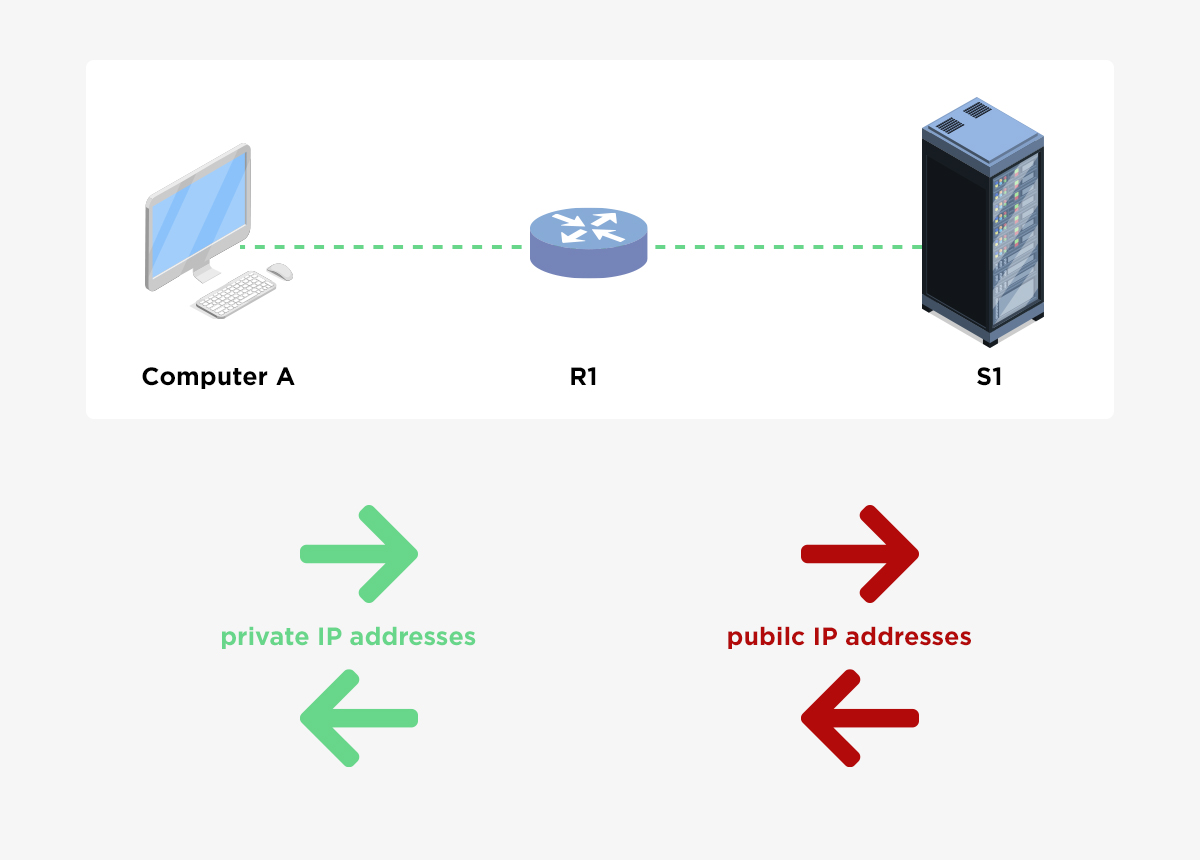 1. Static NAT – translates one private IP address to a public one. The public IP address is always the same.