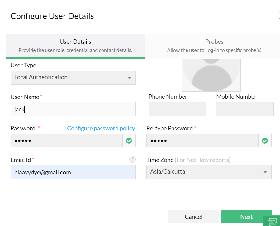 Note: If any user is added to the Central Server, editing/deleting that user from the individual probe can be done only from the central and he cannot be removed by logging into the individual probes.