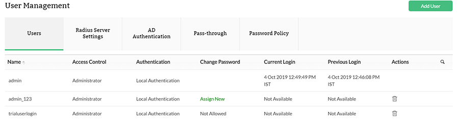 Administrators can add any number of users to the central server and define the scope for each of these users. By going to User Management >> Users from the central, an administrator can: