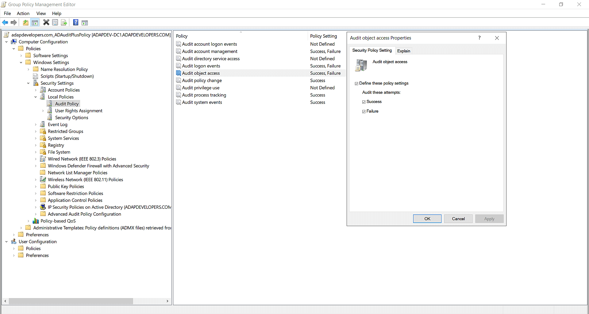 To configure advanced audit policies: