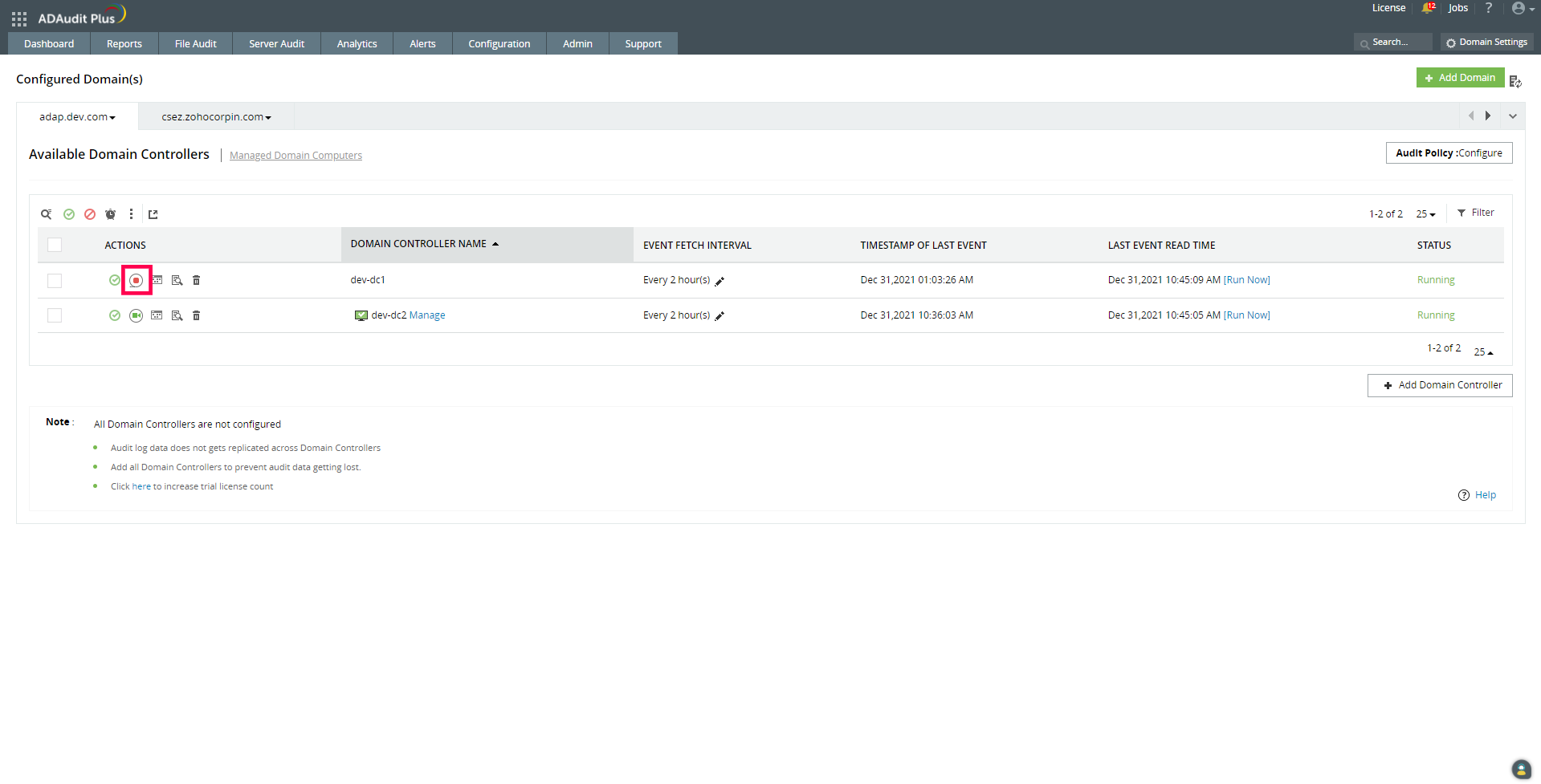 OverviewQuick start System requirementsQuick start PrerequisitesQuick start Deploying ADAudit PlusQuick start Configure components in ADAudit PlusQuick start Related documentationQuick start OverviewActive Directory > Active Directory auditing Configure AD domains and DCs - Automatic configurationActive Directory > Active Directory auditing Configure AD domains and DCs - Manual configurationActive Directory > Active Directory auditing Configure audit policies - Automatic configurationActive Directory > Active Directory auditing Configure audit policies - Manual configurationActive Directory > Active Directory auditing Configure object level auditing - Automatic configurationActive Directory > Active Directory auditing Configure object level auditing - Manual configurationActive Directory > Active Directory auditing Configure event log settingsActive Directory > Active Directory auditing TroubleshootingActive Directory > Active Directory auditing OverviewWindows Server > Removable storage auditing Configure USB AuditingWindows Server > Removable storage auditing TroubleshootingWindows Server > Removable storage auditing OverviewFile Server > Windows file server Supported systemsFile Server > Windows file server Configure Windows file servers - One server at a timeFile Server > Windows file server Configure Windows file servers - In bulkFile Server > Windows file server Configure audit policies - Automatic configurationFile Server > Windows file server Configure audit policies - Manual configurationFile Server > Windows file server Configure object-level auditing - Automatic configurationFile Server > Windows file server Configure object-level auditing - Manual configurationFile Server > Windows file server Configure object-level auditing - Using PowerShell cmdletsFile Server > Windows file server Configure event log settingsFile Server > Windows file server Exclude configurationFile Server > Windows file server File AnalysisFile Server > Windows file server TroubleshootingFile Server > Windows file server OverviewFile Server > EMC server auditing Privileges requiredFile Server > EMC server auditing Adding EMC serversFile Server > EMC server auditing Configure audit policiesFile Server > EMC server auditing Configure event log settingsFile Server > EMC server auditing Automatic configurationFile Server > EMC server auditing Manual configurationFile Server > EMC server auditing Exclusion configurationFile Server > EMC server auditing TroubleshootingFile Server > EMC server auditing OverviewWindows Server > Windows Server Auditing Using product consoleWindows Server > Windows Server Auditing Using command line argumentsWindows Server > Windows Server Auditing Configure audit policies automaticallyWindows Server > Windows Server Auditing Configure audit policies manuallyWindows Server > Windows Server Auditing Remove Apply Group Policy privilege for Authenticated UsersWindows Server > Windows Server Auditing Create a new group, add all Windows servers to the group, and link a GPO to the groupWindows Server > Windows Server Auditing Configure advanced audit policiesWindows Server > Windows Server Auditing Force advanced audit policiesWindows Server > Windows Server Auditing Configure legacy audit policiesWindows Server > Windows Server Auditing Configure event log settingsWindows Server > Windows Server Auditing TroubleshootingWindows Server > Windows Server Auditing OverviewActive Directory > Group policy object auditing Benefits of auditing Group Policy Objects using ADAudit PlusActive Directory > Group policy object auditing Configure domain controllersActive Directory > Group policy object auditing Configure audit controllers - Automatic processActive Directory > Group policy object auditing Configure audit controllers - Manual processActive Directory > Group policy object auditing Configure Object-level auditong - Automatic processActive Directory > Group policy object auditing Configure Object-level auditong - Manual processActive Directory > Group policy object auditing Configure event log settingsActive Directory > Group policy object auditing Install the Group Policy Management ConsoleActive Directory > Group policy object auditing OverviewActive Directory > ADFS auditing Configure AD FS servers in ADAudit PlusActive Directory > ADFS auditing Configure audit policies - Automatic configurationActive Directory > ADFS auditing Configure audit policies - Manual configurationActive Directory > ADFS auditing Configure AD FS servers for auditing - Enable auditingActive Directory > ADFS auditing Configure AD FS servers for auditing - Configure claimsActive Directory > ADFS auditing Configure AD FS servers for auditing - Configure extranet lockoutActive Directory > ADFS auditing TroubleshootingActive Directory > ADFS auditing OverviewWindows workstation auditing Configuring windows workstations - Using product consoleWindows workstation auditing Configuring windows workstations - Using command ine argumentsWindows workstation auditing Configuring audit policies - Automatic ProcessWindows workstation auditing Configuring audit policies - Manual ProcessWindows workstation auditing Configuring event log settingsWindows workstation auditing TroubleshootingWindows workstation auditing OverviewWindows Server > File integrity monitoring Configure FIM in ADAudit PlusWindows Server > File integrity monitoring Configure audit policies - Automatic configurationWindows Server > File integrity monitoring Configure audit policies - Manual configurationWindows Server > File integrity monitoring Configure object-level auditing - Using Windows sharesWindows Server > File integrity monitoring Configure object-level auditing - Using PowerShell cmdletsWindows Server > File integrity monitoring Configure object-level auditing - Using Global Object Access Auditing settingsWindows Server > File integrity monitoring Exclude configurationWindows Server > File integrity monitoring Configuring event log settingsWindows 