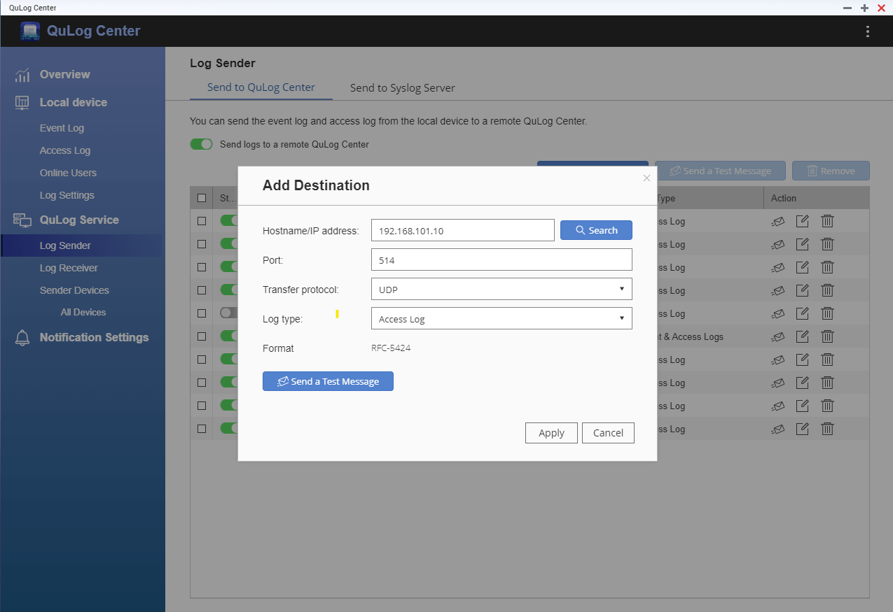 To set up communication between ADAudit Plus and the target QNAP NAS server and to enable log forwarding, follow these steps: