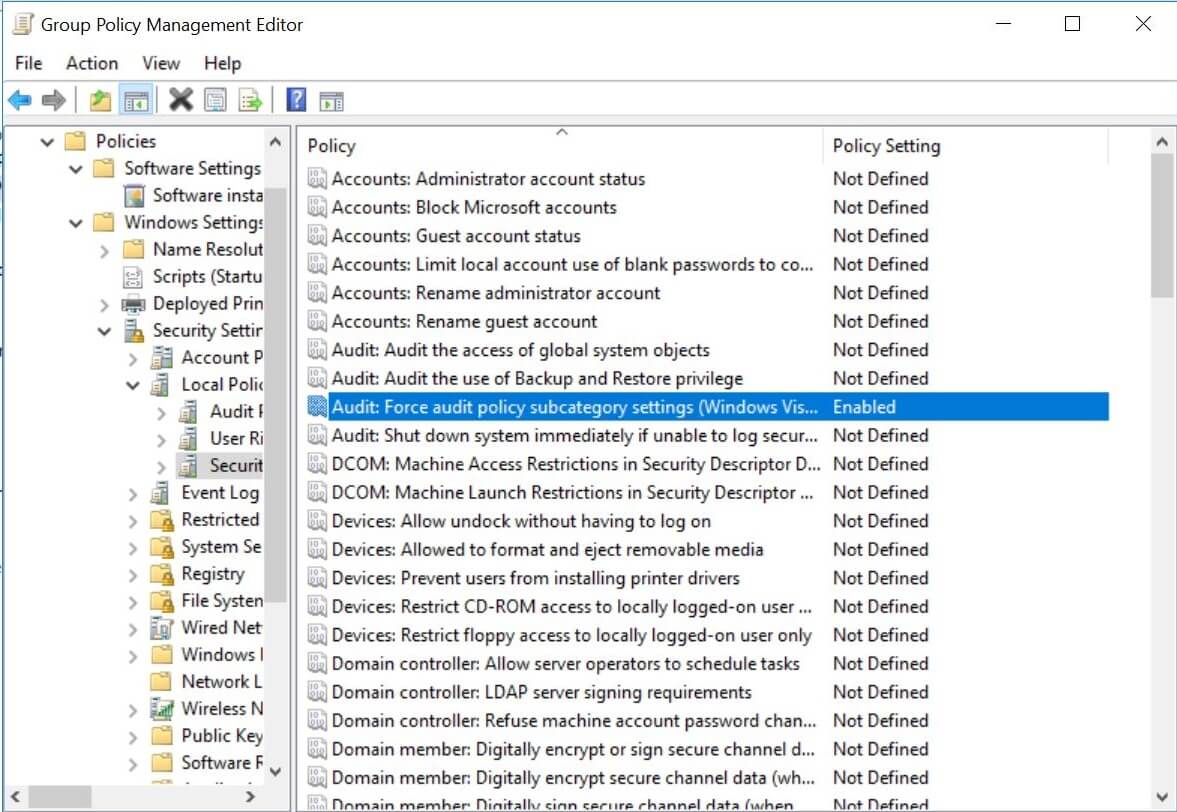 Note:Advanced audit policy configuration is only available in Windows Server 2008 or later. If you have an older version of Windows, configure legacy audit policies. It is recommended that you configure advanced audit policies instead of legacy audit policies to prevent storing needless event data logs, as the legacy policies contain more unwanted events.