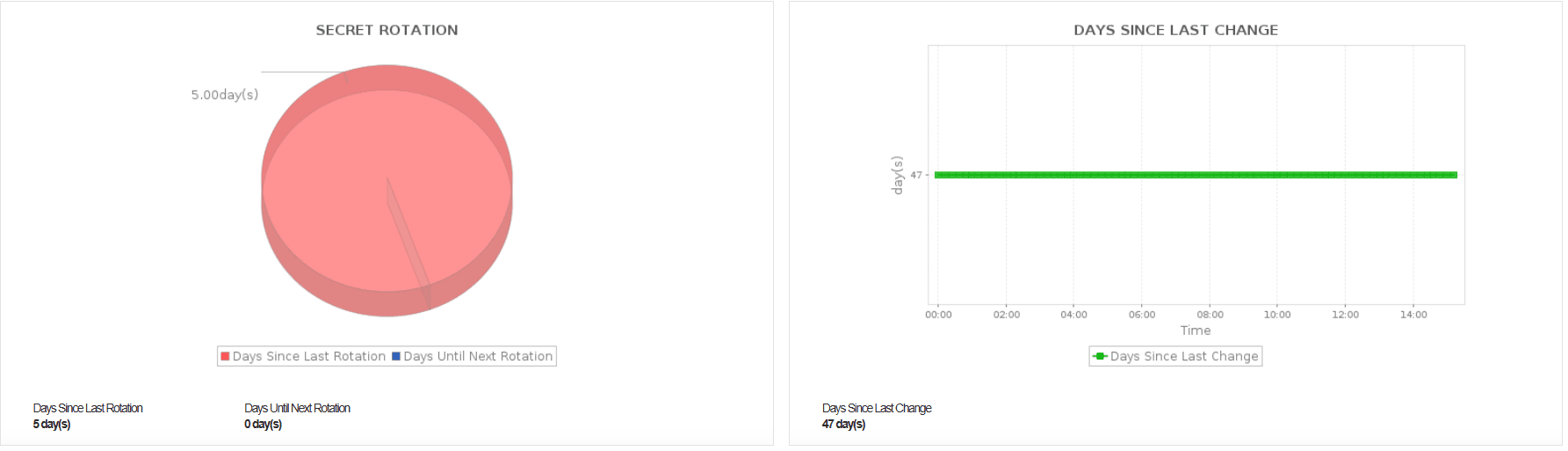 - Identify and mitigate security risks associated with outdated credentials by monitoring secret age and days since the last change, prompting regular rotation.