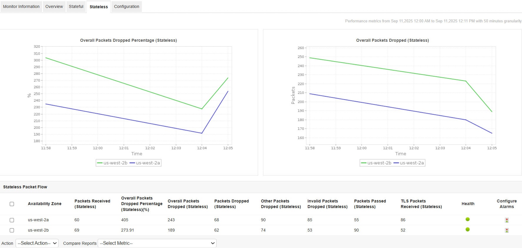 - Strengthen encryption security through TLS inspection metrics, tracking dropped or rejected packets, TLS errors, connection timeouts, and certificate revocation statuses.