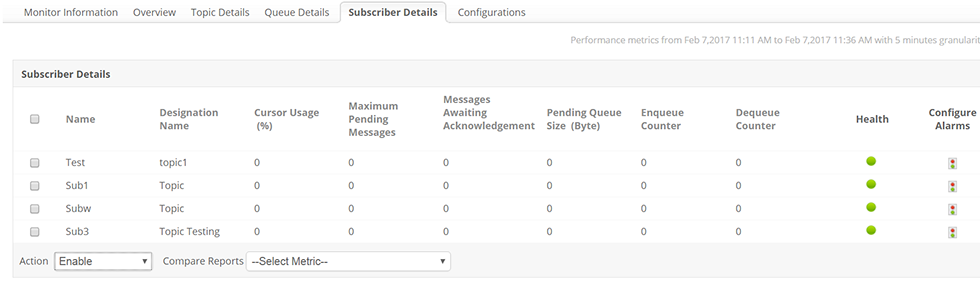 The mechanism of ActiveMQ allows only subscribers specified to a given topic to receive their respective messages from them. It is important to ensure that subscribers receive messages in time and there are no bottlenecks preventing the flow of information. With key details such as the number of messages yet to be received, messages awaiting acknowledgement, pending queue size etc, the flow of information can be monitored and regulated.