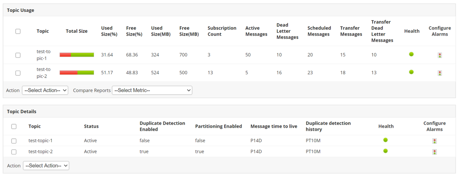 Applications Manager's Microsoft Azure Service Bus monitoring tool sheds light on topic usage. Track the topic size and get notified when the free space decreases. Information about topic status, the count of subscription, active messages, dead letter messages, and transfer messages are also available at your disposal.