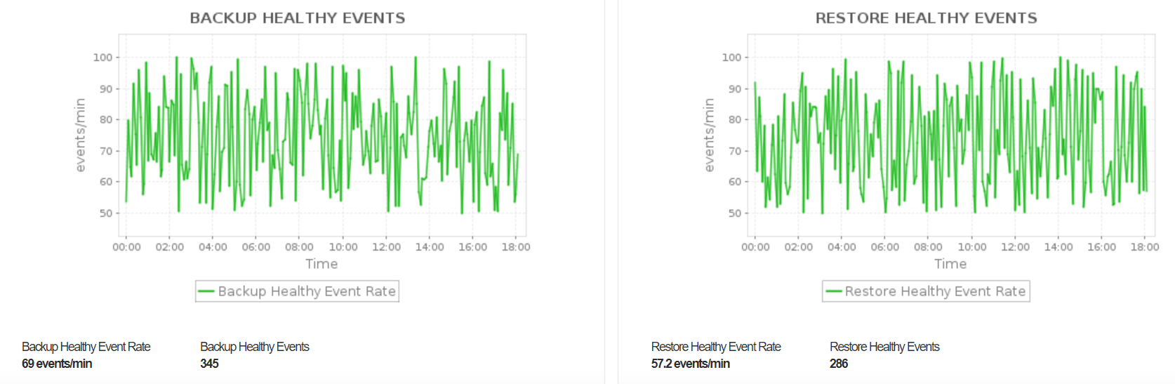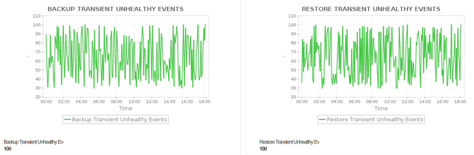 Obtain a holistic view of the reliability and effectiveness of your backup operations by monitoring the number of healthy and unhealthy events that have occurred. Gain detailed insights into the health and performance of restore backup jobs by analyzing metrics related to both Persistent (ongoing) and Transient (temporary) health events.