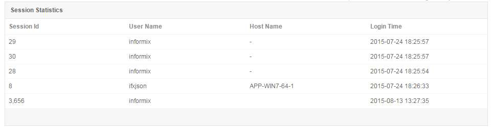 Know more about the number of sessions actively running a query and the number of users waiting to execute in Informix, by knowing details like session id and the host on which the database is running.