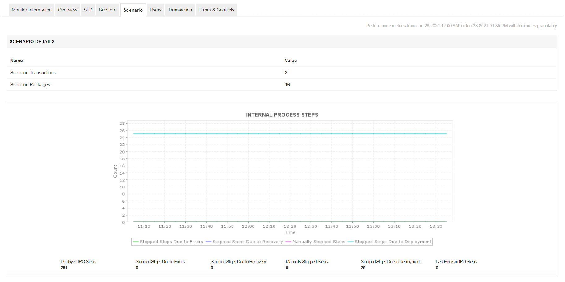Applications Manager's SAP Business One monitor allows you to track critical process step metrics such as Stopped steps due to errors, Manually stopped steps, and Stopped steps due to recovery. This can help admins manage and administer problems instantly.