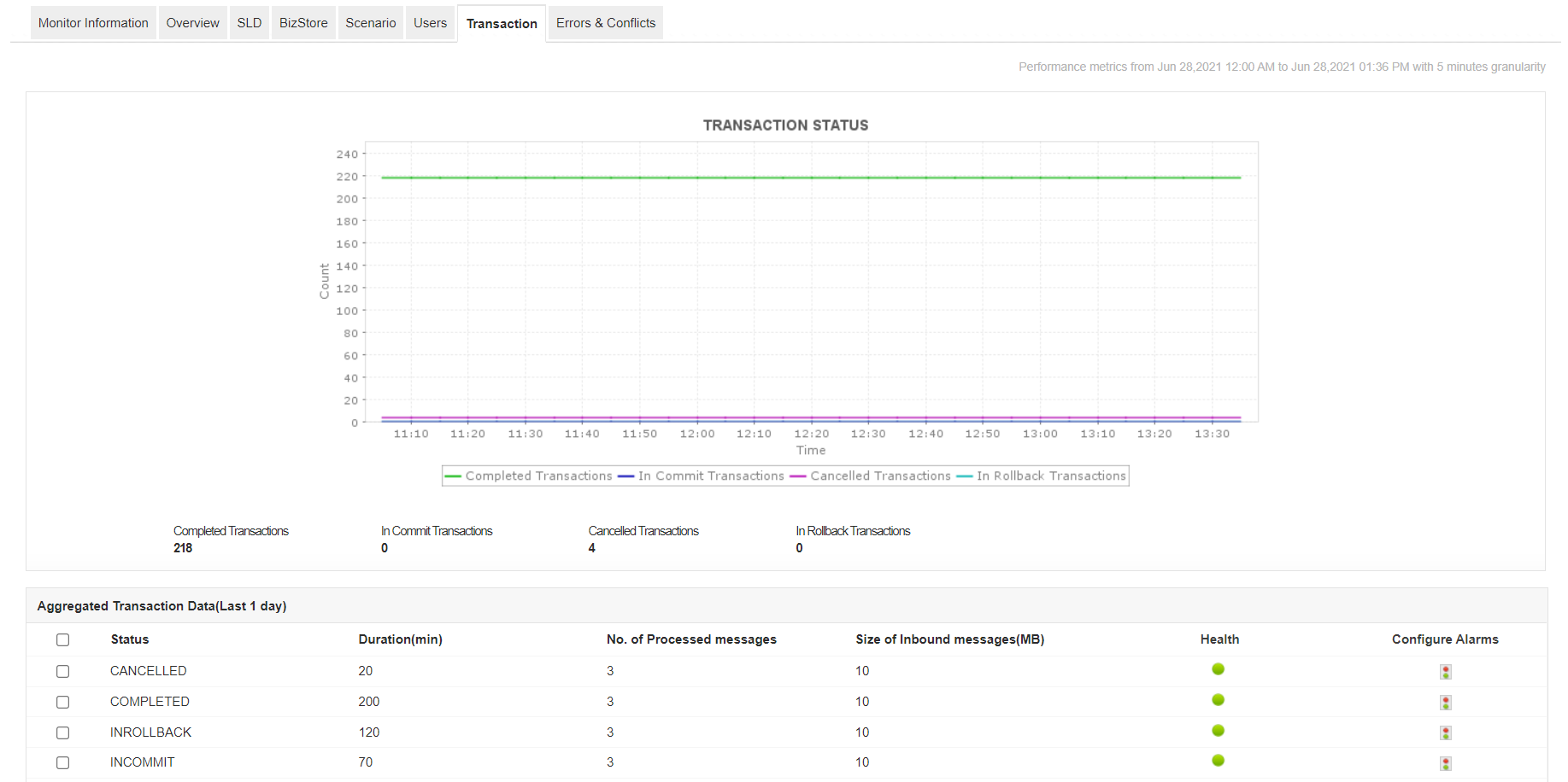 Applications Manager's SAP Business One monitoring software allows you to track and monitor all the transactions in the system. If you find an increase in the number of cancelled transactions, you may need to analyze the underlying cause to prevent it from interfering with the functioning of integration services.