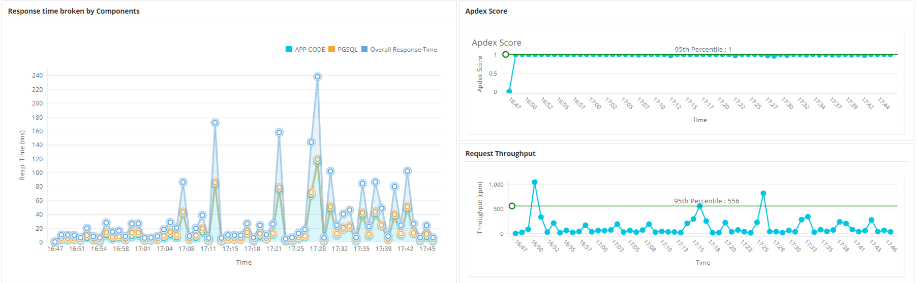 APM tools, such as Applications Manager (or similar products like Dynatrace, New Relic, etc.), are essential for generating and visualizing metrics that indicate the health and efficiency of your application code and architecture. Key indicators tracked include: