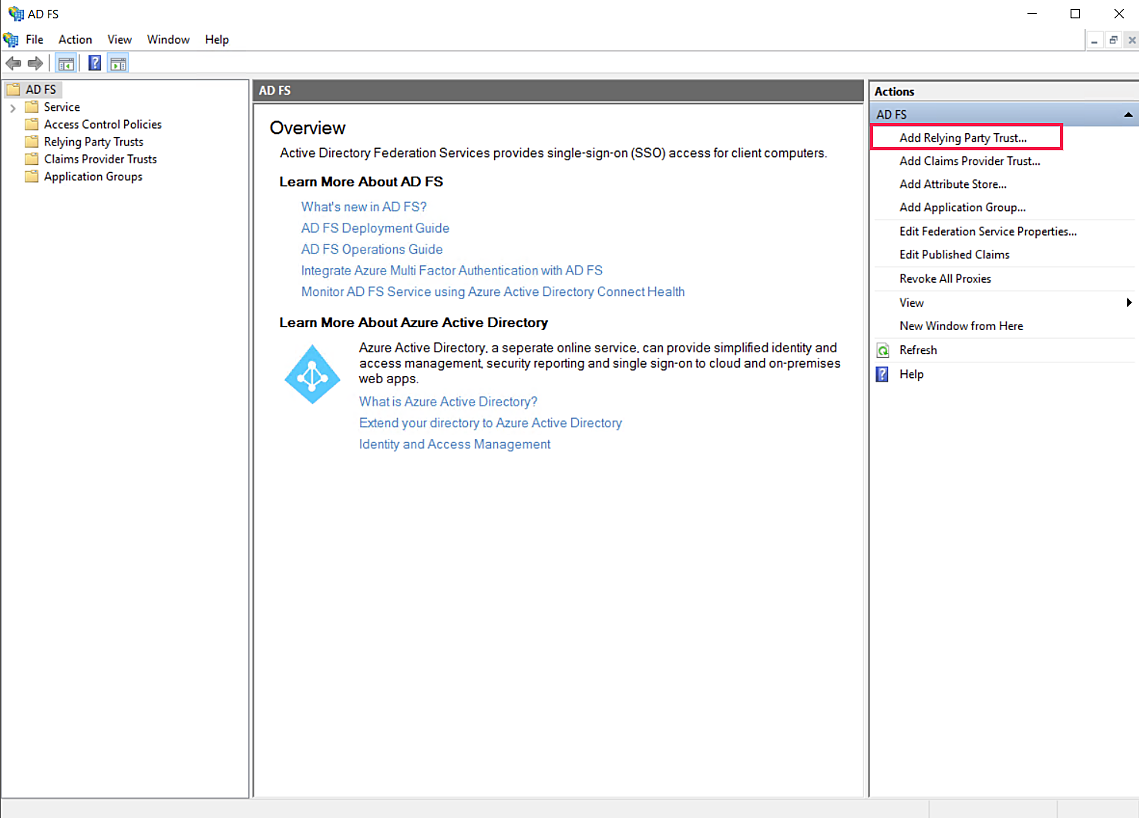 In AD FS management, paste the Entity IDin the Relying party trust identifier. Click on Add.
