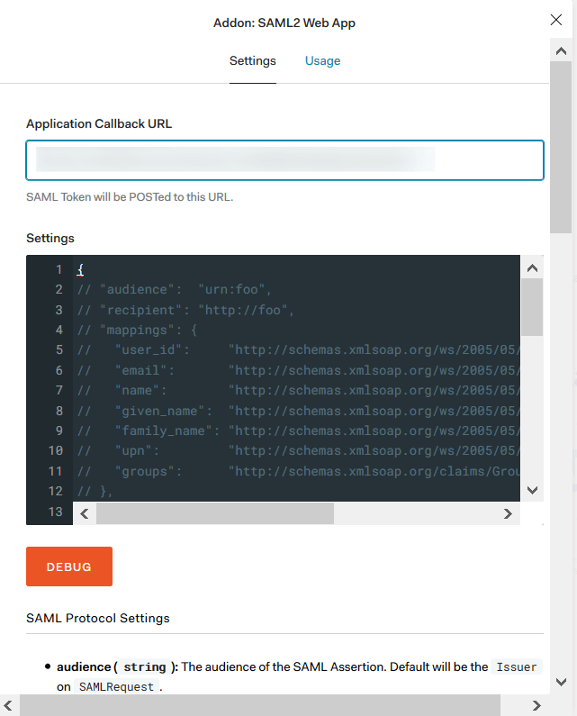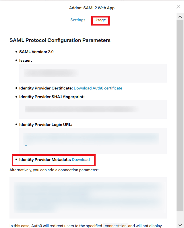 7. Go to the Usage tab. Download the Identity Provider Metadata.