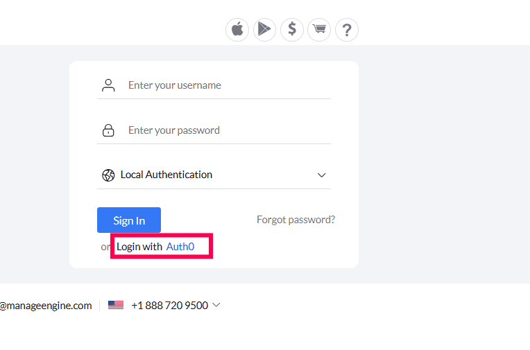 10. In Central Server's login page, choose Login with Auth0.