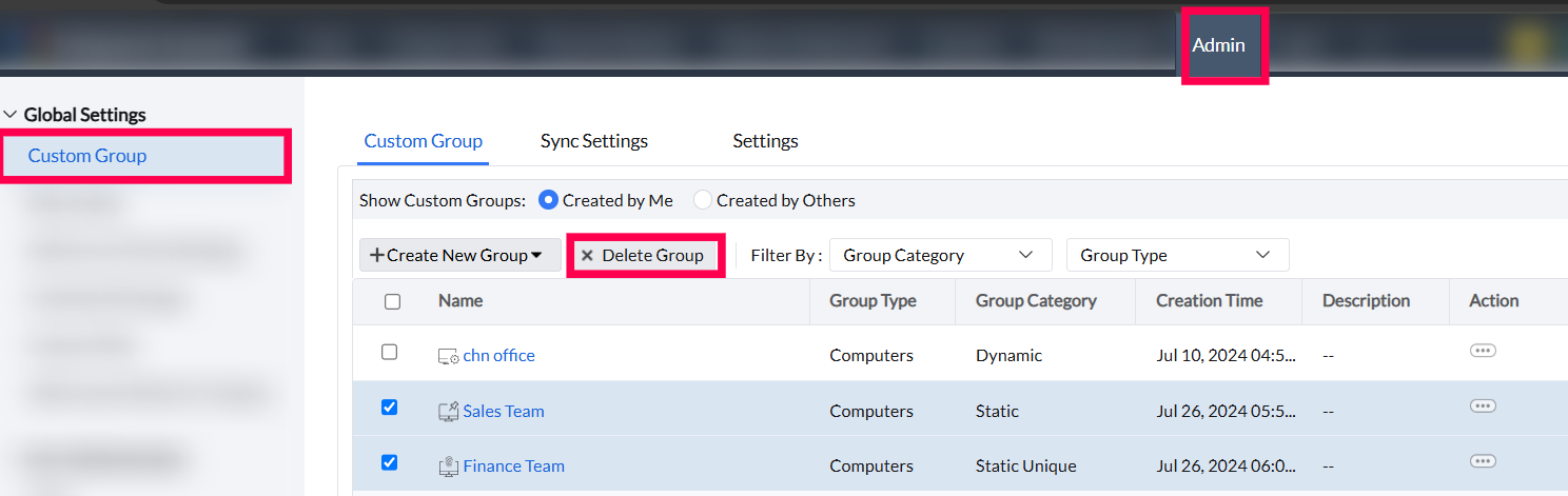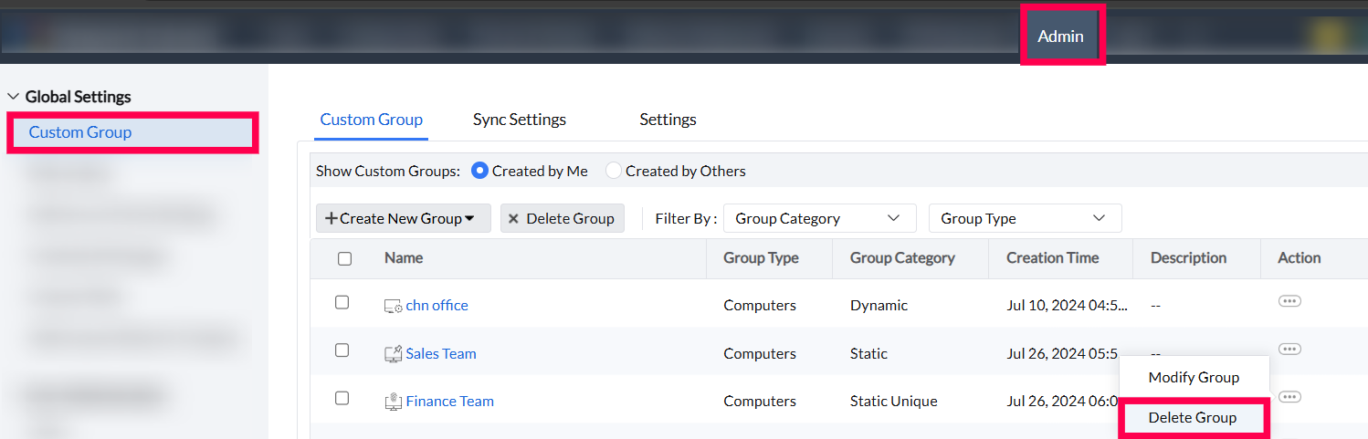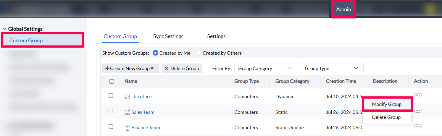 Custom Groups can be created based on computers or users and are classified into the following categories to help organize and manage devices efficiently.