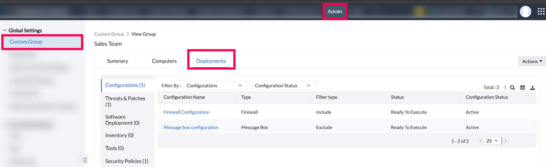 Custom Groups also provide clarity on where they are applied, allowing visibility into deployments and efficient management of group-specific activities.