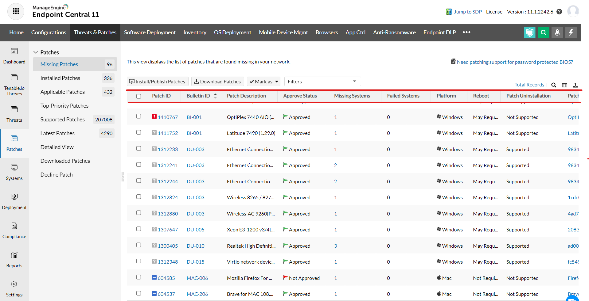 Failed Systems: Refers to the number of systems on which the patch deployment has failed. Clicking the count will list the details of the failed computers, from where you can redeploy.
