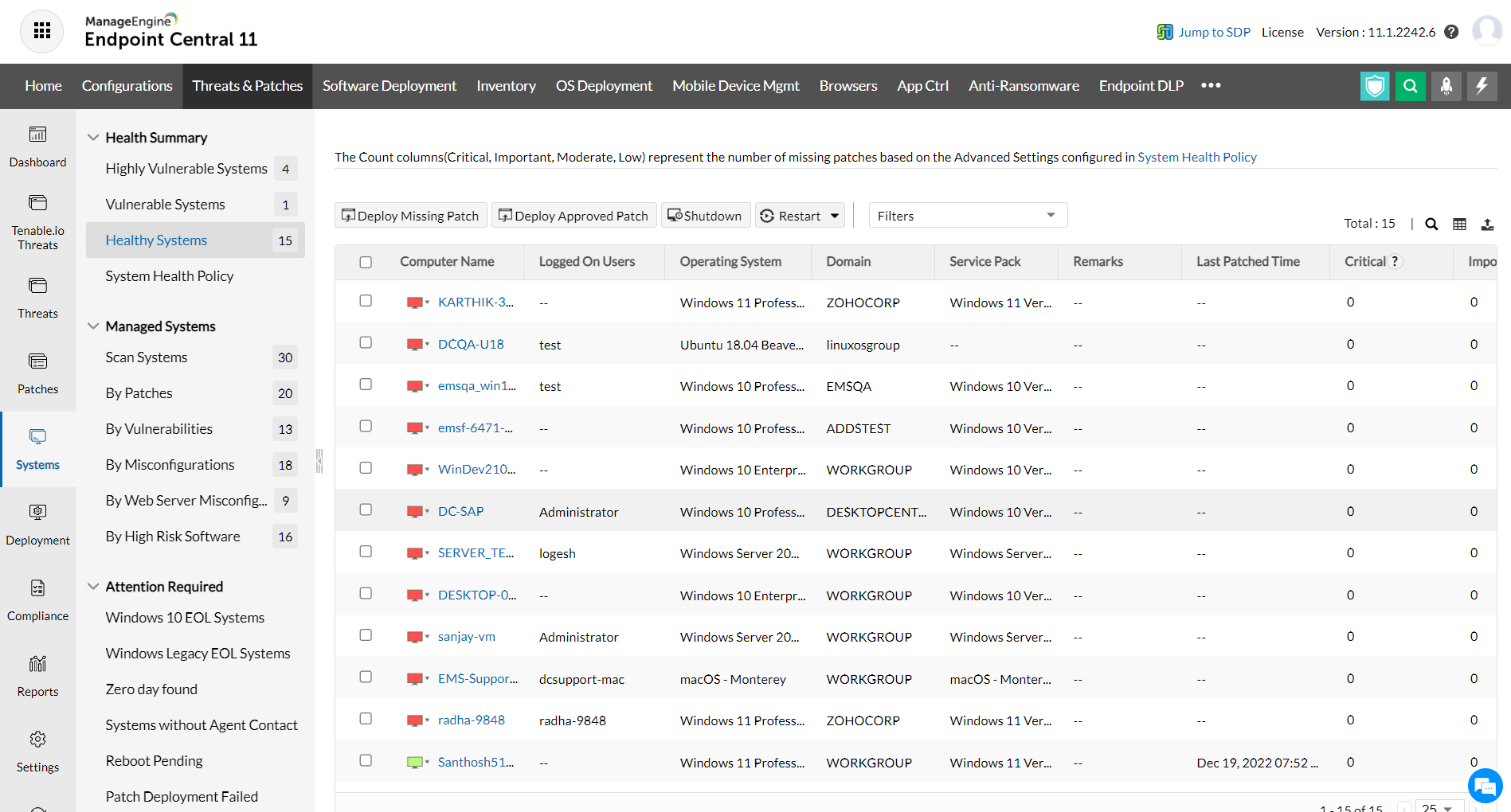 2.  You can also see the patches that are missing on those systems and deploy them.