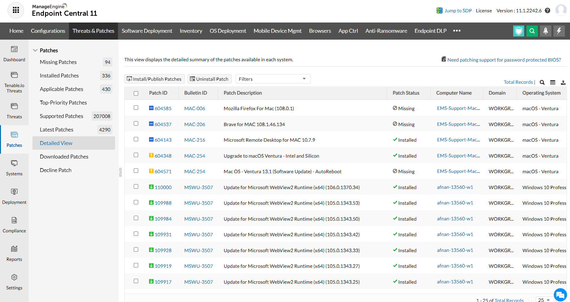 This view displays the detailed summary of the patches available in each system.