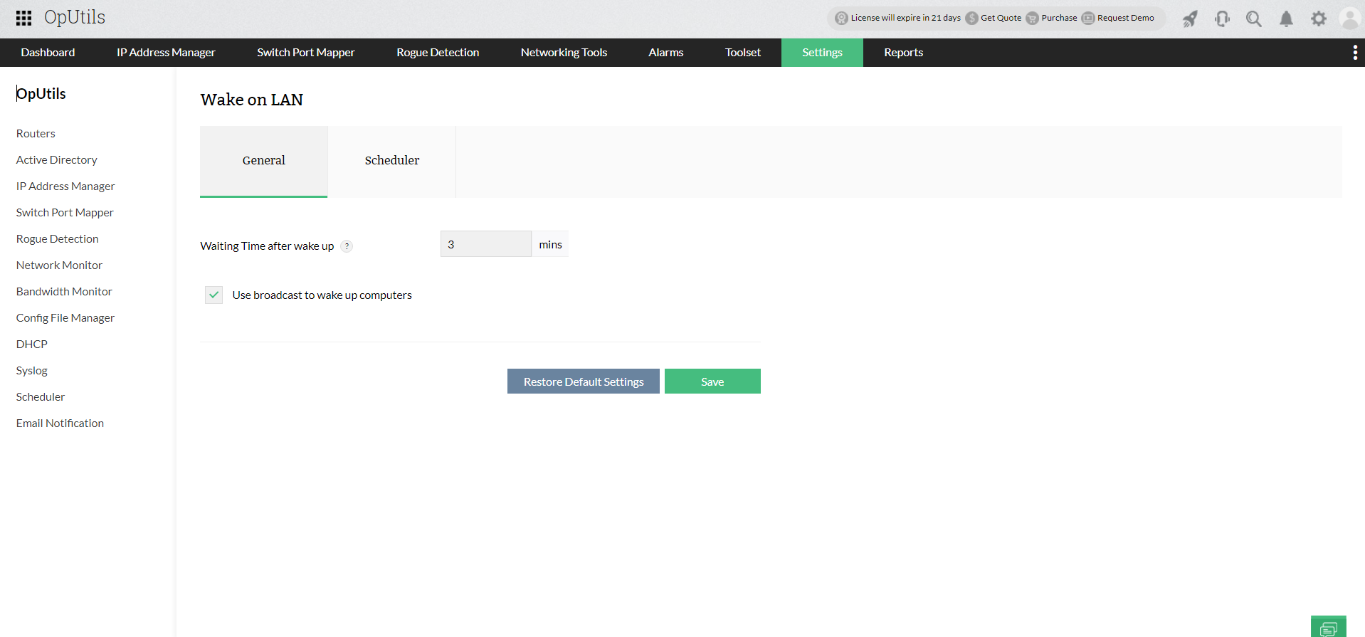 Wake-On-LAN  Solutions - ManageEngine OpUtils